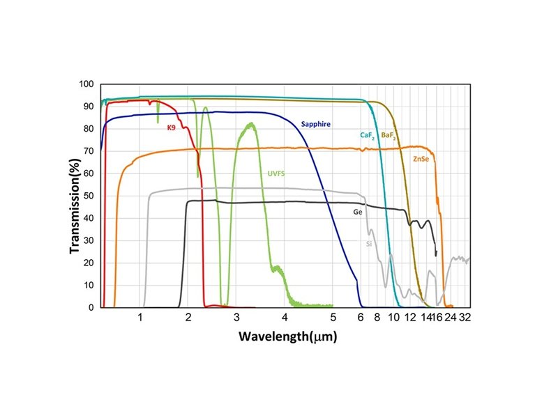 A DiMU Optoelectronics pode fornecer lentes feitas de materiais de vidro ótico (como K9, BK7, B270, etc.) utilizados na banda do espetro visível, e materiais de cristais ópticos (como seleneto de zinco, sulfureto de zinco, fluoreto de cálcio, sílica fundida, etc.) utilizados na banda do espetro infravermelho próximo/infravermelho/ultravioleta.
