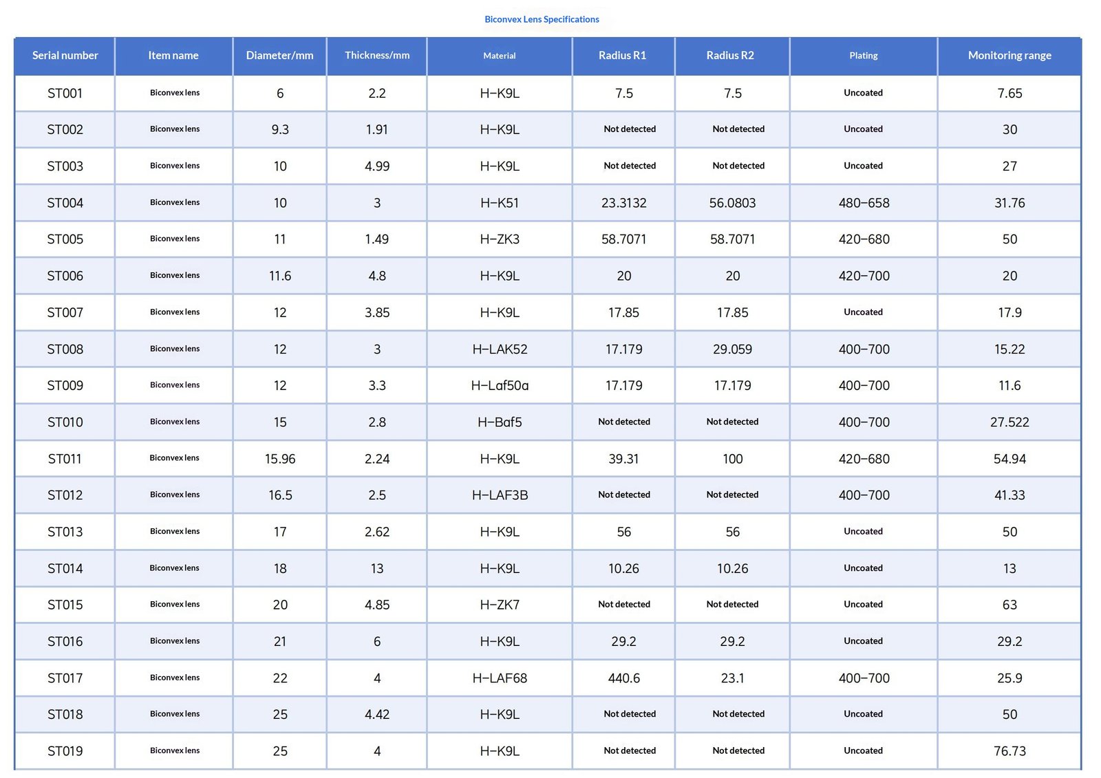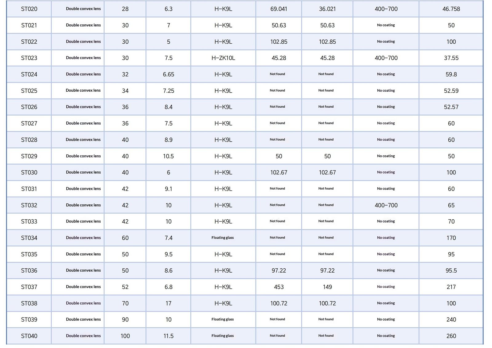 1 avaliação de ST001 biconvex lens No coating H-K9L